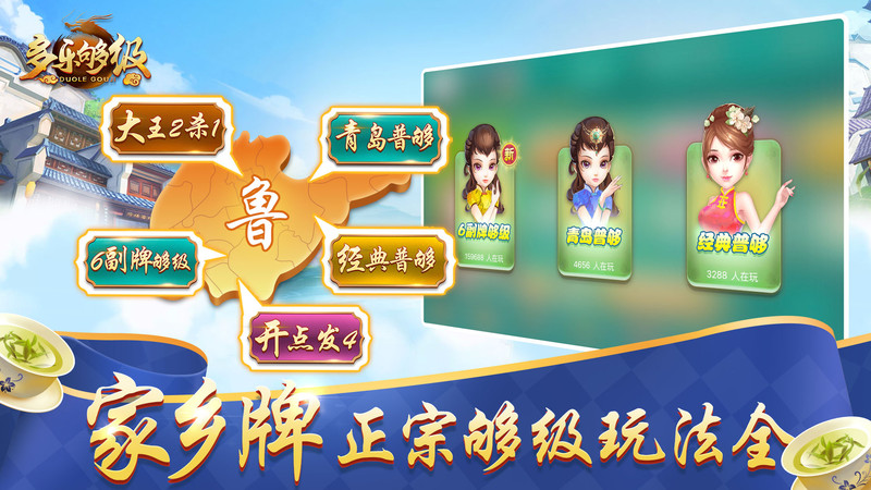 多乐够级(里诺软件园提供下载)是一款将风靡山东牌友群体间的够级牌玩法都搬到了线上平台中来的免费棋牌手游!在这里,大家很轻松的就能免费畅玩到自己生活或者记忆中所熟悉的鲁地够级牌,不仅牌局规则都是遵循各地的经典玩法来进行模拟设定以为大家固定的,而且可日常无限制领豆的娱乐方式也是能让大家天天都有牌打的!里诺软件园现有最新版本,想要打牌不怕输吗,那就快来下载吧!
