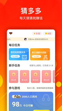 猜多多(里诺软件园提供下载)是一款非常热门的趣味娱乐软件,里面有着超多好玩的功能模式,用户不仅可以在这里面玩耍各种小游戏,并且还能进行闯关,闯关成功之后还会有相关的现金奖励,让用户在边玩的同时还能赚到钱,更有英语,电影和电视剧等相关学习内容供你学习观看,里诺软件园现有最新版本,感兴趣的朋友们快来下载吧!